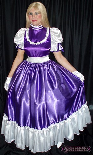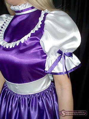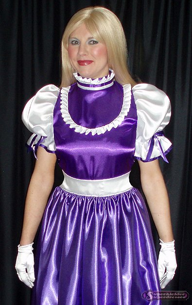 Traumhaftes langes Glamour Kleid aus Hochglanz Satin besetzt mit wunderschönen Satin Rüschen und Schleifen.