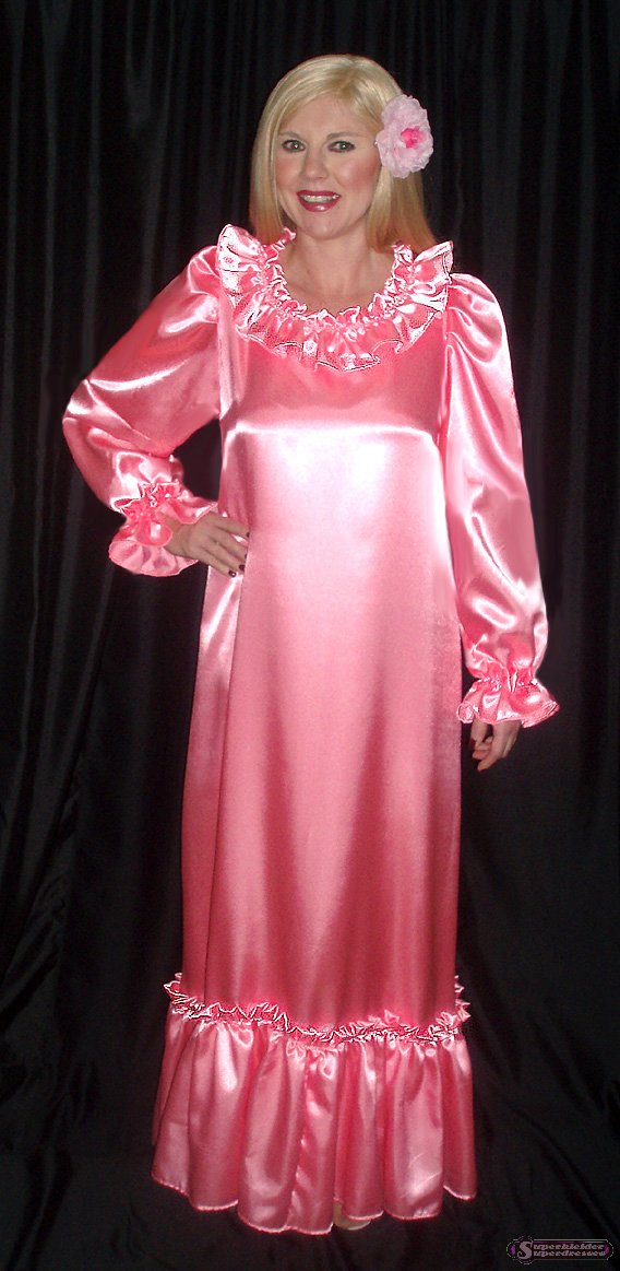 Das Nachthemd wird hinten mit einem Reißverschluss geschlossen und ist in vielen wunderschönen Hochglanz Farben und Materialien lieferbar.