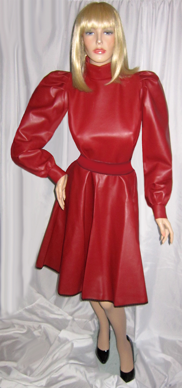 Traumhaft elegantes knielanges Kleid aus geschmeidigem Lederimitat, mit passendem Tailliengürtel!