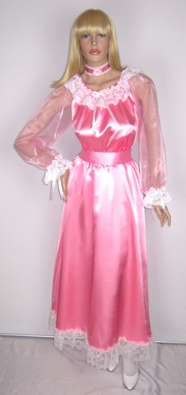 Traumhaftes langes Kleid mit eleganten Organza Ärmeln, besetzt mit zauberhafter Spitze und süssen Satin Schleifchen.
